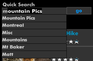 For the background image, I used php to pull the highest rated / most viewed image from the current collection and added a blur effect to give the current page a theme that represents the current image collection. At this point the more advanced features of the Flash version such as searching by location, tags, and dates are not incorporated yet, but will be in the near future.